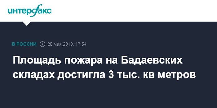 Санкт-Петербург. 20 мая. INTERFAX.RU - Огонь на Бадаевских складах Петербурга распространился на площадь в 3 тыс. квадратных метров, локализовать пожар пока не удается.