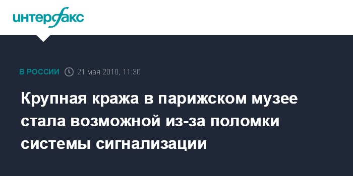 Крупная кража в парижском музее стала возможной из-за поломки системы сигнализации