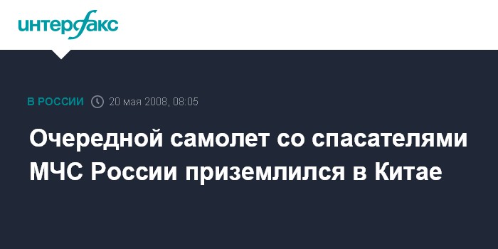 Москва. 20 мая. INTERFAX.RU - Самолет МЧС России со спасателями на борту, вылетевший накануне с подмосковного аэродрома "Раменское" приземлился в Китае.