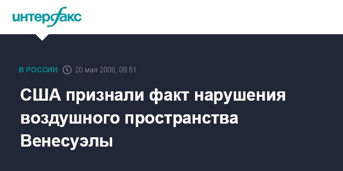 Вашингтон/Каракас. 20 мая. INTERFAX.RU - Вашингтон подтвердил, что в минувшую субботу самолет американских военно-морских сил нарушил воздушное пространство Венесуэлы, сообщает во вторник телекомпания CNN. Пилот "признал свою ошибку и связался с венесуэльской диспетчерской службой, чтобы подтвердить это", - заявил представитель госдепартамента США Том Кейси.
