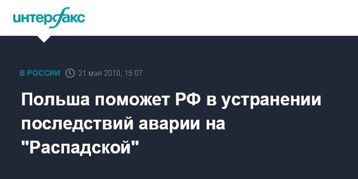 Москва. 21 мая. INTERFAX.RU - Польша окажет России помощь в устранении последствий аварии на угольной шахте "Распадская", сообщил в пятницу журналистам по итогам заседания двусторонней межправительственной комиссии по экономическому сотрудничеству министр инфраструктуры Польши Цезары Грабарчик. "В ходе встречи господин Левитин (сопредседатель комиссии с российской стороны - ИФ) обратился ко мне с просьбой, чтобы Польша оказала помощь в устранении последствий катастрофы в горнодобывающей шахте ("Распадская" - ИФ). И в начале июня в Россию приедет польская делегация с заместителем министра экономики и представителями 20 горнодобывающих шахт, которые будут заниматься разработкой этого вопроса", - сказал он.