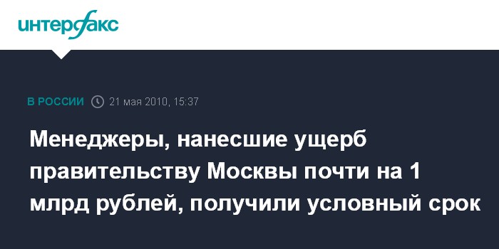 Менеджеры, нанесшие ущерб правительству Москвы почти на 1 млрд рублей, получили условный срок