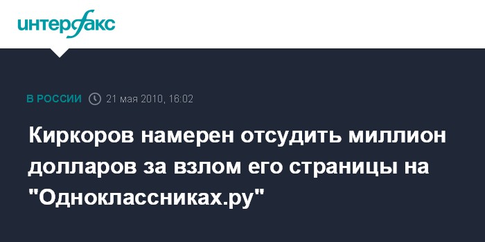 Киркоров намерен отсудить миллион долларов за взлом его страницы на "Одноклассниках.ру"