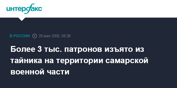 Москва. 20 мая. INTERFAX.RU - Сотрудники криминальной милиции Самарской области на территории военной части Внутренних войск МВД России обнаружили крупный тайник с патронами различных калибров. "В поселке Студенцы Кинельского района сотрудниками уголовного розыска Самарской области в ходе проведения оперативно-розыскных мероприятий на территории стрельбища военной части 5599 ВВ МВД России был обнаружен тайник, закопанный в землю на глубину 20 см", - сообщили "Интерфаксу" в местных правоохранительных органах.