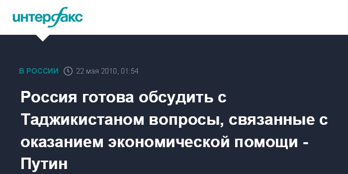 Россия готова обсудить с Таджикистаном вопросы, связанные с оказанием экономической помощи - Путин