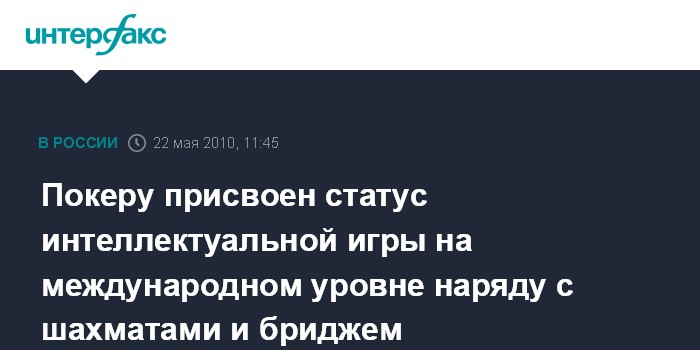 Покеру присвоен статус интеллектуальной игры на международном уровне наряду с шахматами и бриджем