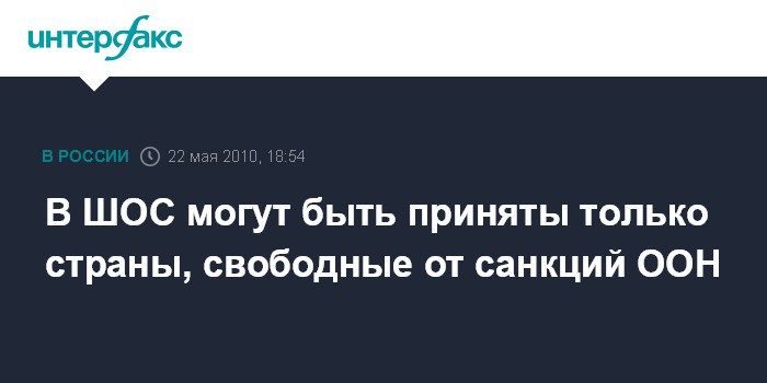 Москва. 22 мая. INTERFAX.RU - На членство в ШОС может претендовать только государство, в отношении которого Совбезом ООН не введены санкции, заявил в субботу журналистам дипломатический источник в ШОС.
