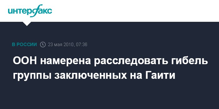 Нью-Йорк. 23 мая. ИНТЕРФАКС - В миротворческой миссии ООН на Гаити планируют провести расследование расстрела 12 заключенных, поднявших бунт в тюрьме вскоре после землетрясения в этой островной карибской стране в январе 2010 года.
