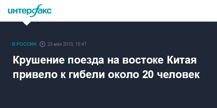 Вашингтон. 23 мая. INTERFAX.RU - Не менее 19 человек погибли и более 70 ранены в результате железнодорожной аварии с пассажирским поездом в провинции Цзянси, на востоке Китая. По сообщению телекомпания Си-Эн-Эн, локомотив и восемь из 17-и вагонов поезда сошли с рельсов из-за оползня в горной местности, где в последние дни шли сильные дожди.