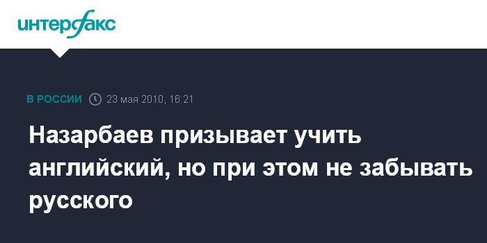 Вместе с тем президент Казахстана призвал учить английский. "Мы должны улучшать знание английского языка, чтобы мы имели доступ не только к открытиям и информации на русском и казахском языках, но и к международным информационным системам", - отметил он.