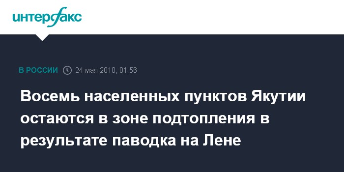 Якутск. 24 мая. ИНТЕРФАКС-ДАЬНИЙ ВОСТОК - К концу дня в воскресенье в Якутии, не смотря на существенное падение уровня паводка на Лене, несколько населенных пунктов остаются в зоне подтопления, сообщает главное управление МЧС по республике.