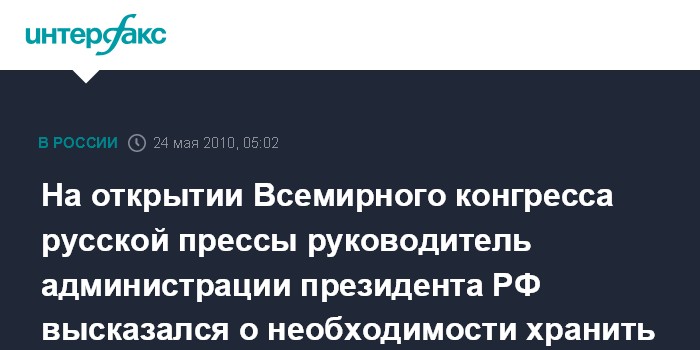 На открытии Всемирного конгресса русской прессы руководитель администрации президента РФ высказался о необходимости хранить память о Победе