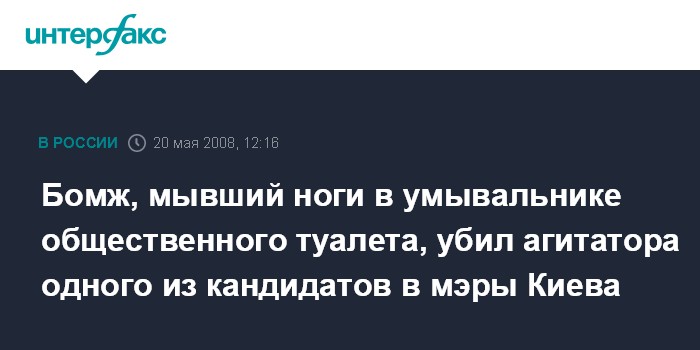 Бомж, мывший ноги в умывальнике общественного туалета, убил агитатора одного из кандидатов в мэры Киева