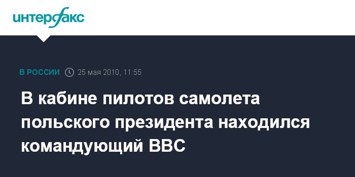 В кабине пилотов самолета польского президента находился командующий ВВС