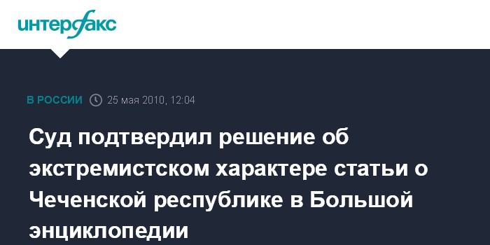 Суд подтвердил решение об экстремистском характере статьи о Чеченской республике в Большой энциклопедии