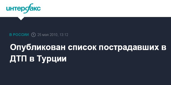 Москва. 24 мая. INTERFAX.RU - МЧС России опубликовало на своем официальном сайте список пострадавших в ДТП в Турции. В нем значится 41 человек.