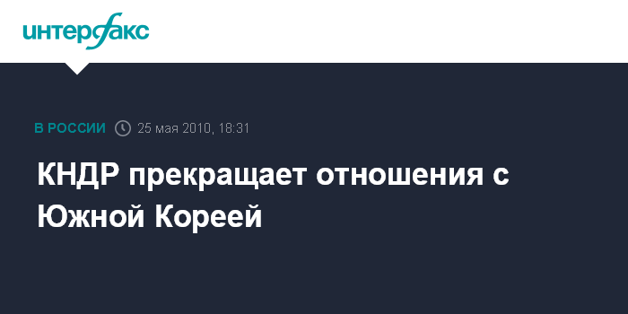 Сеул. 25 мая. INTERFAX.RU - Власти КНДР приняли решение о прекращении всех отношений с Южной Кореей, сообщают во вторник сеульские СМИ со ссылкой на северокорейское агентство ЦТАК.