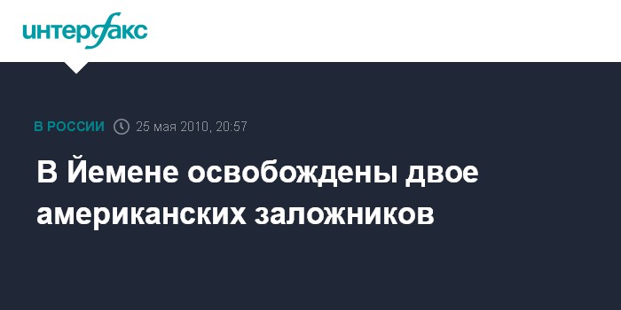 Дубай. 25 мая. ИНТЕРФАКС - Власти Йемена объявили во вторник об освобождении двух американских туристов, захваченных в заложники одним из местных племен, сообщает агентство ЭФЭ.