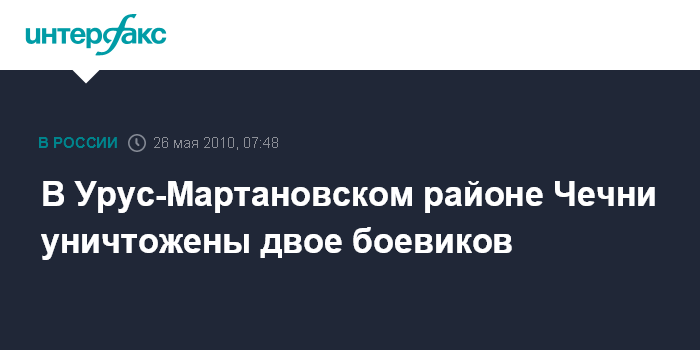 "Двое неизвестных вооруженных лиц были обнаружены сотрудниками милиции на окраине селения. На требование предъявить для проверки документы они открыли по милиционерам огонь из автоматического оружия. В ходе завязавшейся перестрелки оба боевика были уничтожены", - сказал собеседник агентства.