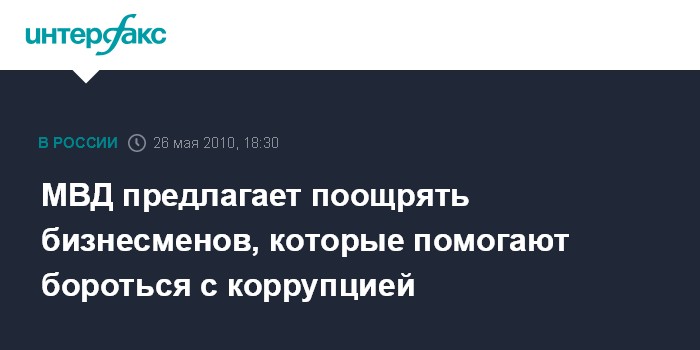 МВД предлагает поощрять бизнесменов, которые помогают бороться с коррупцией