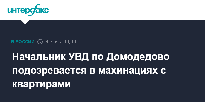 Москва. 26 мая. INTERFAX.RU - Начальник УВД по Домодедово (Московская область) подозревается в том, что пять лет назад незаконно добился предоставления квартир своим родственникам.