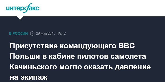 Присутствие командующего ВВС Польши в кабине пилотов самолета Качиньского могло оказать давление на экипаж