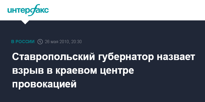 Ставропольский губернатор назвает взрыв в краевом центре провокацией