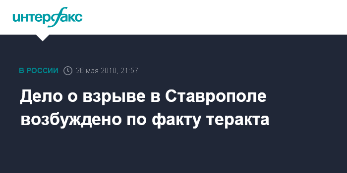 Москва. 26 мая. INTERFAX.RU - СКП РФ возбудил уголовное дело по факту взрыва в центре Ставрополя.