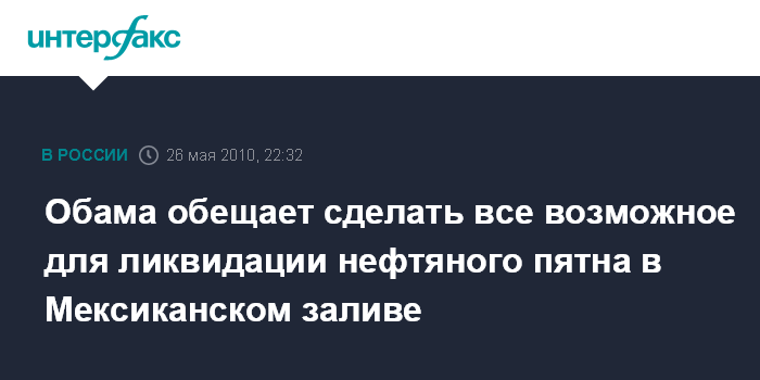 Вашингтон. 26 мая. ИНТЕРФАКС - Президент США Барак Обама пообещал в среду, что сделает все возможное, чтобы полностью ликвидировать нефтяное пятно, образовавшееся в Мексиканском заливе в результате аварии на нефтедобывающей платформе, сообщают местные СМИ.