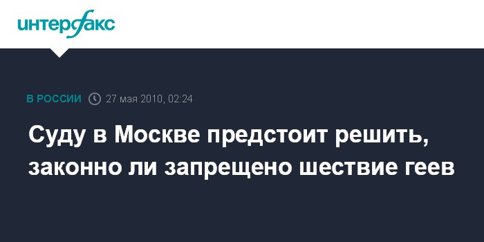 Ранее один из организаторов гей-парада Николай Алексеев сообщил "Интерфаксу", что организаторы мероприятия обжаловали в Таганском суде столицы запрет префектуры Центрального административного округа Москвы на проведение трех пикетов 29 мая.
