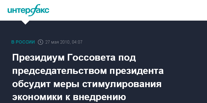 Москва. 27 мая. INTERFAX.RU - Президент РФ Дмитрий Медведев проведет в четверг заседание президиума Госсовета, посвященное экологической ситуации в России.