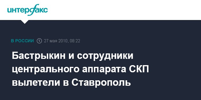 Москва. 27 мая. INTERFAX.RU - В Ставрополь для координации расследования теракта вылетел председатель СКП РФ Александр Бастрыкин, сообщил "Интерфаксу" официальный представитель СКП Владимир Маркин.
