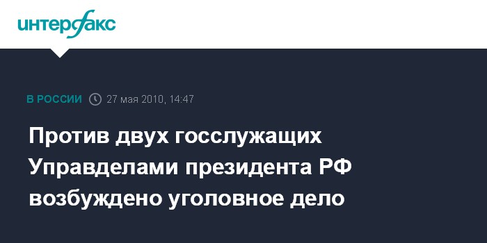 Против двух госслужащих Управделами президента РФ возбуждено уголовное дело
