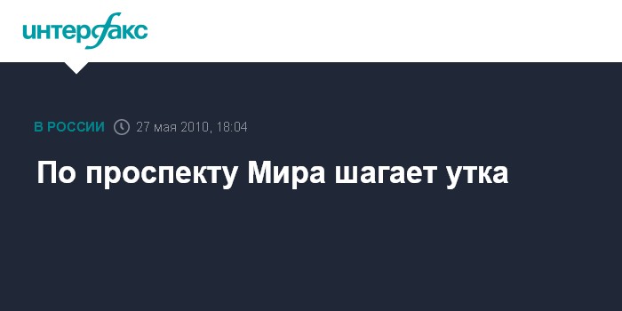 Москва. 27 мая. INTERFAX.RU – Движение по проспекту Мира в сторону области в районе станции метро "Проспект мира" затруднено из-за того, что, как сообщают очевидцы, по разделительной полосе проспекта идет настоящая утка, сопровождаемая утенком, и водители притормаживают, чтобы сфотографировать птиц. По словам свидетелей, откуда птица появилась на трассе – неизвестно.