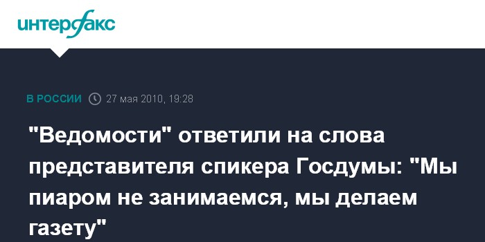 "Ведомости" ответили на слова представителя спикера Госдумы: "Мы пиаром не занимаемся, мы делаем газету"