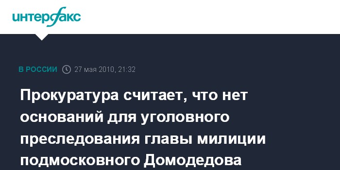Прокуратура считает, что нет оснований для уголовного преследования главы милиции подмосковного Домодедова