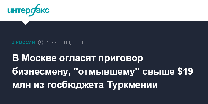 В Москве огласят приговор бизнесмену, "отмывшему" свыше $19 млн из госбюджета Туркмении