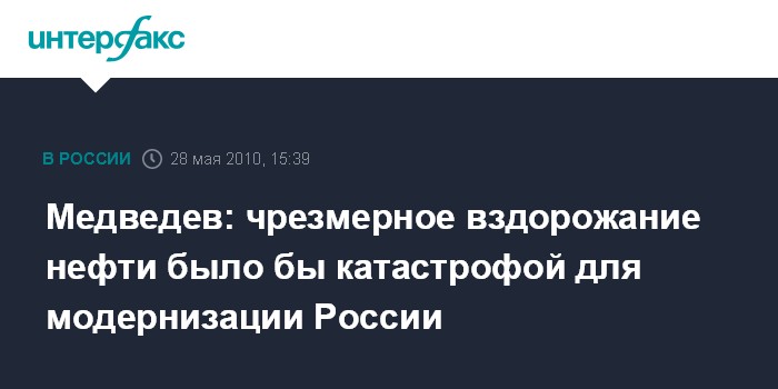 Медведев: чрезмерное вздорожание нефти было бы катастрофой для модернизации России