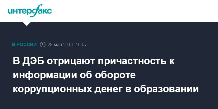 В пресс-службе заявили, что ряд СМИ со ссылкой на департамент опубликовали данные, по которым оборот коррупционных денежных средств в отечественном образовании составляет $5,5 миллиарда. В пресс-релизе говорится, что эксперт в своем докладе подчеркивал, что приведенные данные не носят официальный характер и являются результатом собственного расследования. "ДЭБ признает право представителей общественности высказывать собственные мнения и оценки, вместе с тем обращает внимание на их корректность и объективность", - говорится в пресс-релизе ведомства.