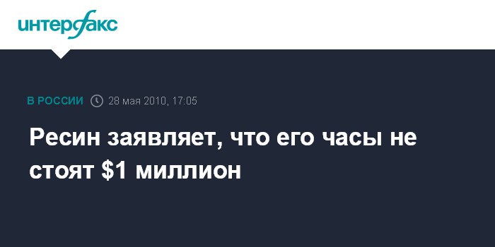 "Если кто-то за мои часы заплатит $1 млн, $950 тыс. я отдам на благотворительность. Не стоят эти часы миллиона", - подчеркнул Ресин.