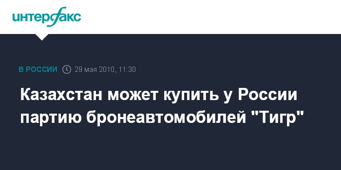 Астана (Казахстан). 29 мая. INTERFAX.RU - Ведутся переговоры о возможной поставке в Казахстан российских бронированных автомобилей "Тигр", сказал "Интерфаксу" замдиректора Федеральной службы по военно-техническому сотрудничеству (ФСВТС) России Константин Бирюлин.