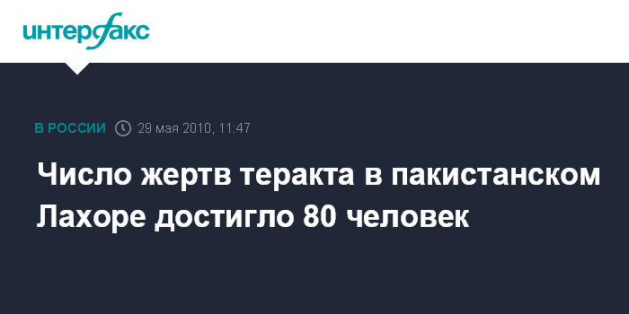 Лондон. 29 мая. INTERFAX.RU - Более 80 человек, согласно последним данным, убиты в пакистанском городе Лахор, где одновременно были совершены нападения на две мечети немногочисленной ахмадийской секты, сообщает в субботу BBC.
