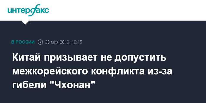 Китай призывает не допустить межкорейского конфликта из-за гибели "Чхонан"