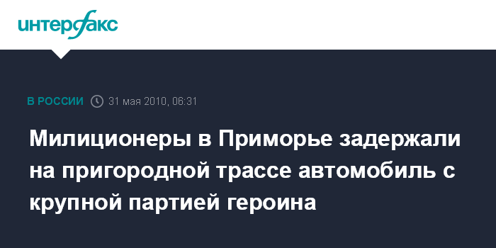 Владивосток. 31 мая. ИНТЕРФАКС-ДАЛЬНИЙ ВОСТОК - Сотрудники ГИБДД УВД Шкотовского района Приморского края, остановив на трассе Владивосток-Находка для проверки автомобиль, обнаружили у водителя 58 граммов героина, сообщает в понедельник пресс-служба УВД края.