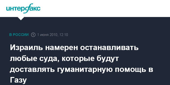 Москва. 1 июня. INTERFAX.RU - Израиль остановит любое другое судно с грузом гуманитарной помощи, которое попытается войти в воды сектора Газа. С таким предупреждением выступил во вторник заместитель министра обороны Израиля Матан Вильнаи.