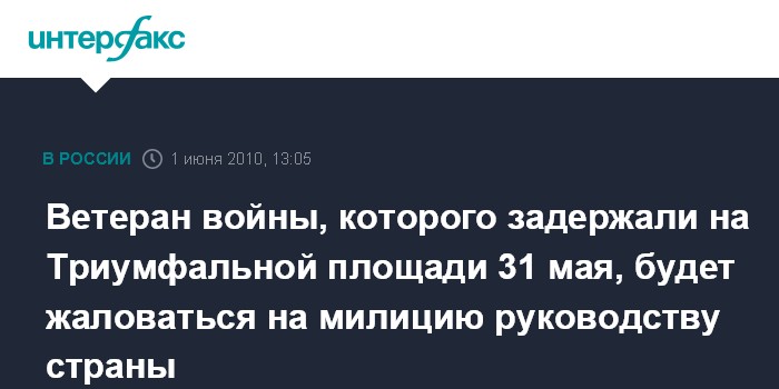 Ветеран войны, которого задержали на Триумфальной площади 31 мая, будет жаловаться на милицию руководству страны