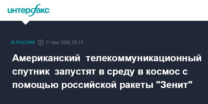 Американский телекоммуникационный спутник запустят в среду в космос с помощью российской ракеты "Зенит"