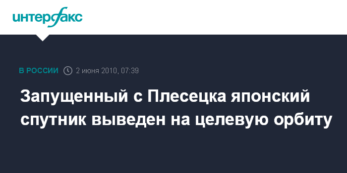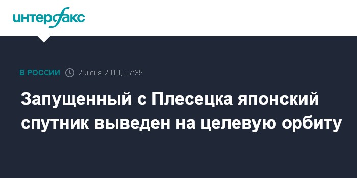 Краснознаменск (Московская область). 2 июня. ИНТЕРФАКС-АВН - Стартовавшая в среду с космодрома Плесецк (Архангельская область) ракета-носитель легкого класса "Рокот" и разгонный блок "Бриз-КМ" в 07:36 МСК успешно вывели на орбиту японский космический аппарат Servis-2, сообщил "Интерфаксу-АВН" пресс-секретарь управления пресс-службы и информации Минобороны РФ по Космическим войскам подполковник Алексей Золотухин.