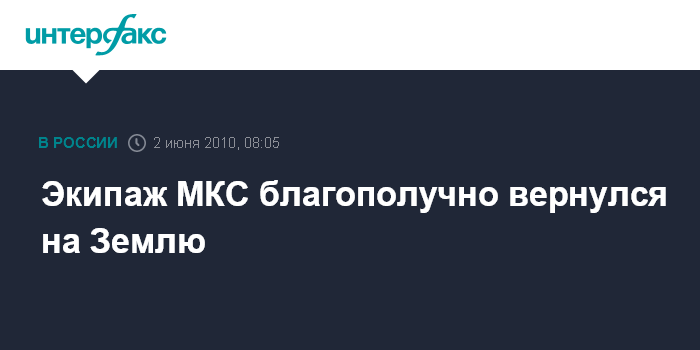Москва. 2 июня. INTERFAX.RU - Российский, японский и американский космонавты успешно приземлились в Казахстане на пилотируемом корабле "Союз ТМА-17" после 161-суточного полета на борту МКС, сообщает корреспондент "Интерфакса-АВН" из подмосковного Центра управления полетами (ЦУП).