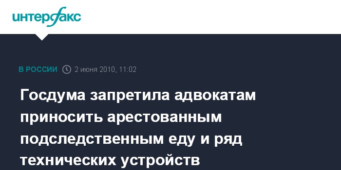 Москва. 2 июня. INTERFAX.RU - Государственная дума приняла в окончательном чтении законопроект, запрещающий адвокатам проносить определенные виды технических устройств в места содержания под арестом их подзащитных.